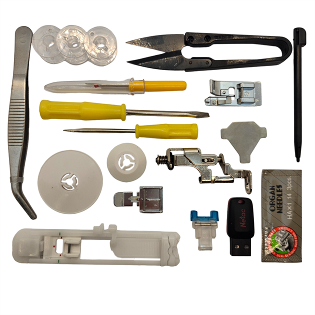 | Ekstra Özellikler | Ekstra geniş uzatma tablası, dikiş sayacı, dst nakış formatında çalışma, dikiş aynalama, esnek dikiş desenleri, desen büyütme ve küçültme |