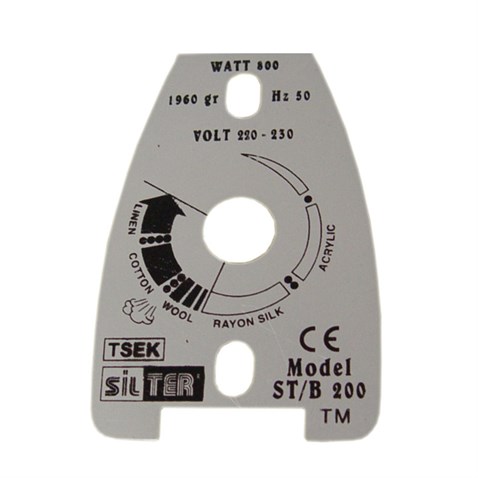 Açıklama: Sanayi tipi ütüler de kullanılır. Ütü gövdesinin üstüne takılarak, ütü ayar düğmesinin konumunu etiketin üzerinde ki işaretlere göre belirlenmesini sağlar.